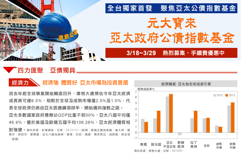 |元大寶來投信獨立經營管理|本基金經金融監督管理委員會核准,惟不表示本基金絕無風險。基金經理公司以往之經理績效不保證本基金之最低投資收益;基金經理公司除盡善良管理人之注意義務外,不負責本基金之盈虧,亦不保證最低之收益,投資人申購前應詳閱本基金公開說明書。定時定額報酬率將因投資人不同時間進場,而有不同之投資績效,過去之績效亦不代表未來績效之保證。本文提及之經濟走勢預測,不必然代表本基金之績效。文中所述之資料、建議或預測係基金經理公司合理預測為可靠之消息來源,然基金經理公司不保證其準確及完整性。以上資料、建議或預測可能因市場變化而隨時改變,基金經理公司不負更新之責。基金經理公司亦不保證本文之預測將可實現。本基金投資涉及新興市場部分,因其波動性與風險程度可能較高,且其政治與經濟情勢穩定度可能低於已開發國家,也可能使資產價值受不同程度之影響。投資人應注意債券型基金投資之風險包括利率風險、債券交易市場流動性不足之風險及投資無擔保公司債之風險;債券型基金或有因利率變動、債券交易市場流動性不足及定期存單提前解約而影響基金淨值下跌之風險,同時或有受益人大量贖回時,致延遲給付贖回價款之可能。基金配息率不代表基金報酬率,且過去配息率不代表未來配息率,基金淨值可能因市場因素而上下波動,基金的配息可能由基金的收益或本金中支付。任何涉及由本金支出的部份,可能導致原始投資金額減損。投資風險詳細資料與申購基金應負擔之相關費用,已揭露於基金公開說明書,投資人申購前應詳閱基金公開說明書。基金經理公司或銷售機構有公開說明書備索,或至基金經理公司之網址(http://www.yuantafunds.com)、公開資訊觀測站(http://newmops.twse.com.tw)查詢。基金非存款或保險,故無受存款保險、保險安定基金或其他相關保障機制之保障。